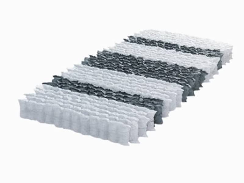 500 springs/m² ensure optimal pressure distribution. The barrel-shaped spring is ideal for adjustable bases. It features 7 zones, including hip and shoulder comfort zones. Both sides are covered with 4 cm of natural latex for optimal moisture management through the perforated natural latex. Natural latex is adaptable, making it cool in summer and pleasantly comfortable in winter.