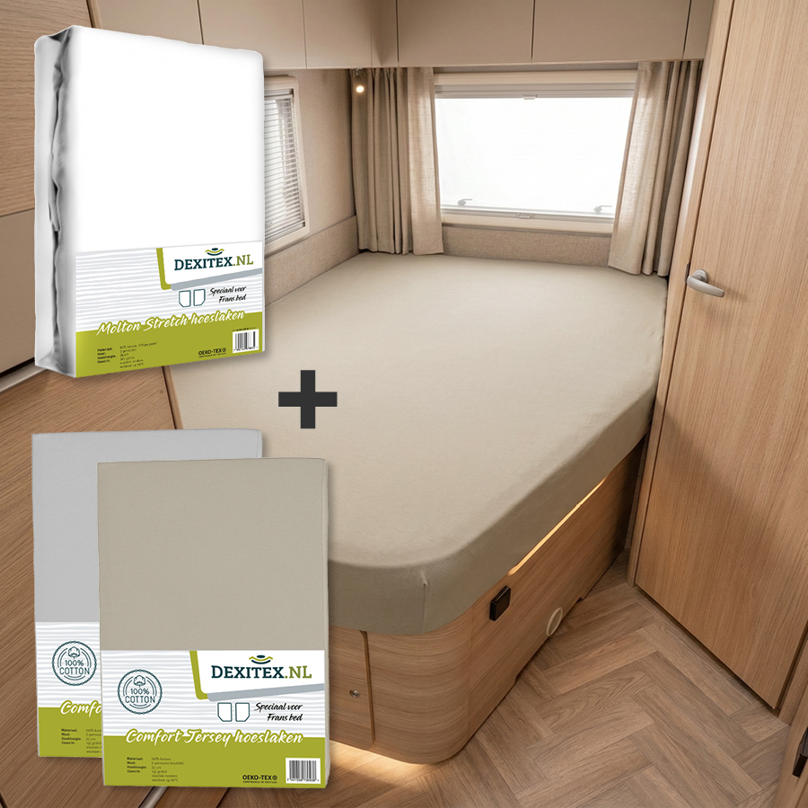 The covers for this set are specially designed for French bed mattresses, meaning all covers feature a beveled corner at the foot end for a perfect fit. So you’ll always sleep comfortably in your caravan, camper, or boat. Wonderfully flexible, and it always fits!