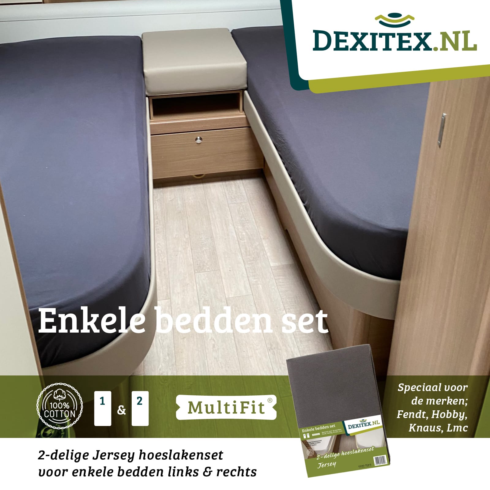 Dexitex is the founder and largest supplier of fitted sheets for campers and caravans in the Benelux and Germany. We understand better than anyone that standard fitted sheets simply don’t work for the unique shape of camper mattresses.