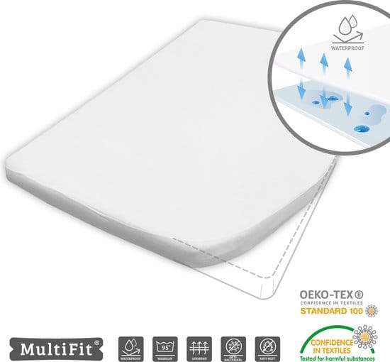 Regarding size, we’ve developed these waterproof mattress protectors with a MultiFit® fit. This means they’re manufactured with three different angles, making them perfect for French bed mattresses with a width of 130 to 160 cm, and a length of around 200 cm. Nice and flexible!